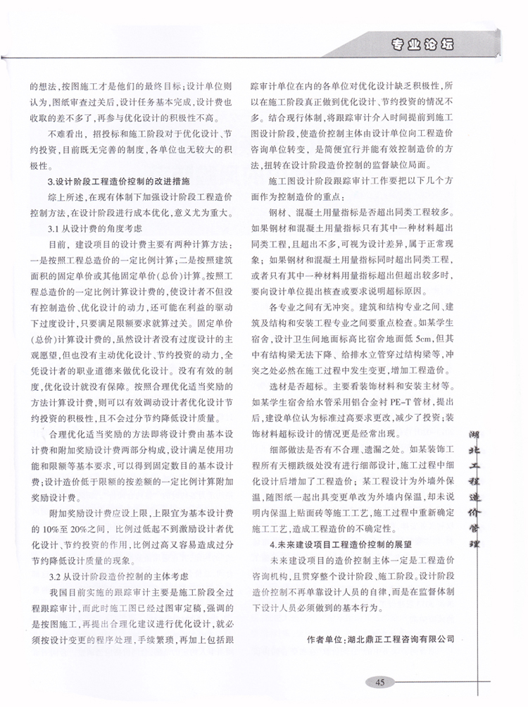 祝賀我司李光洲同志所著文章《淺談建設項目在設計階段的造價控制》在全國工程造價管理類優(yōu)秀期刊《湖北工程造價管理》2014年第4期“專業(yè)論壇”板塊發(fā)表。