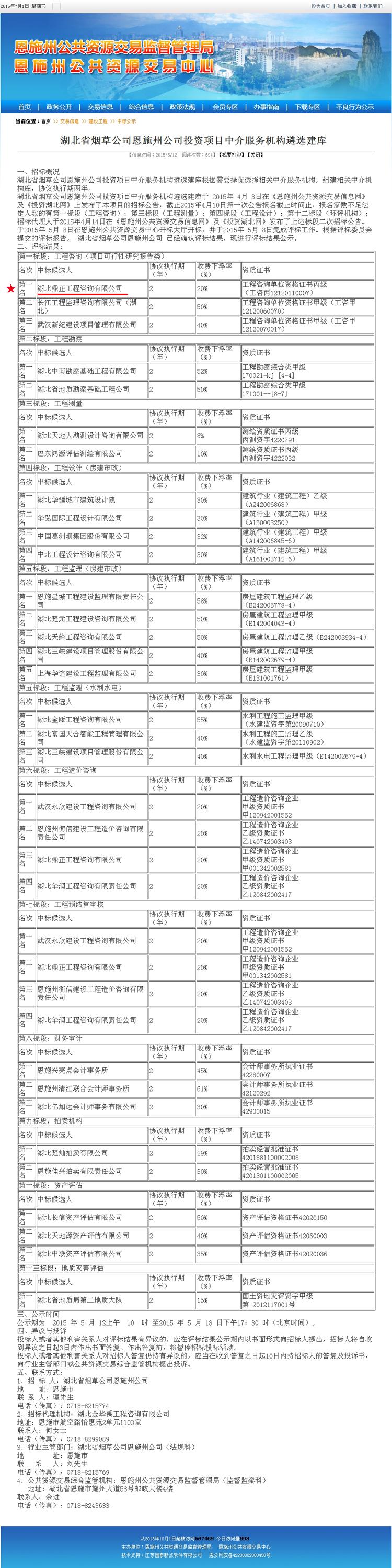 【經(jīng)營成果】我司入選湖北省煙草公司恩施州公司投資項目工程咨詢中介服務(wù)機構(gòu)庫