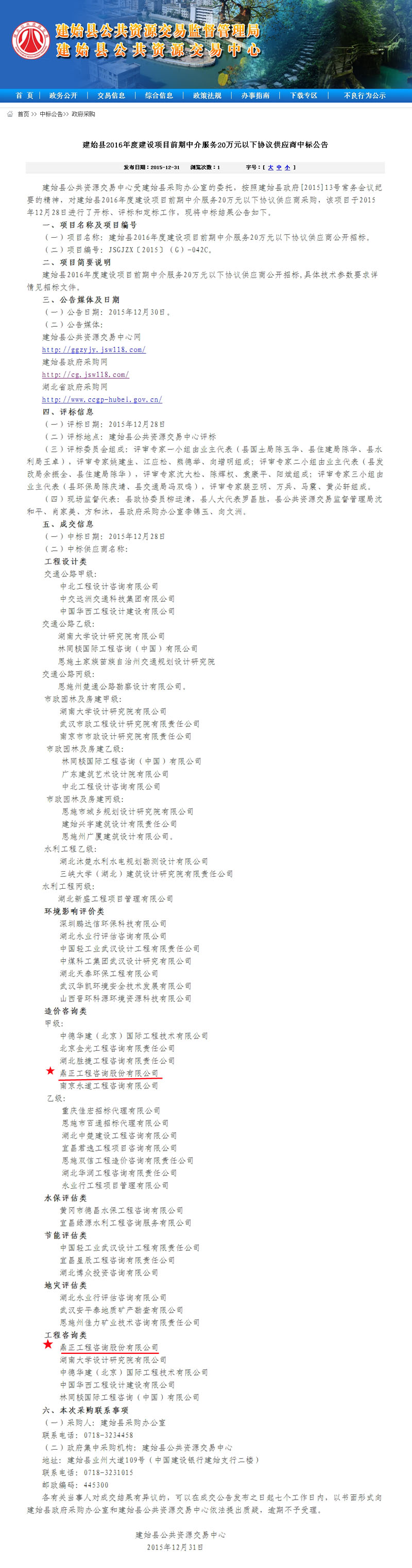 【經(jīng)營成果】我司入選建始縣2016年度建設項目前期中介服務20萬元以下協(xié)議供應商