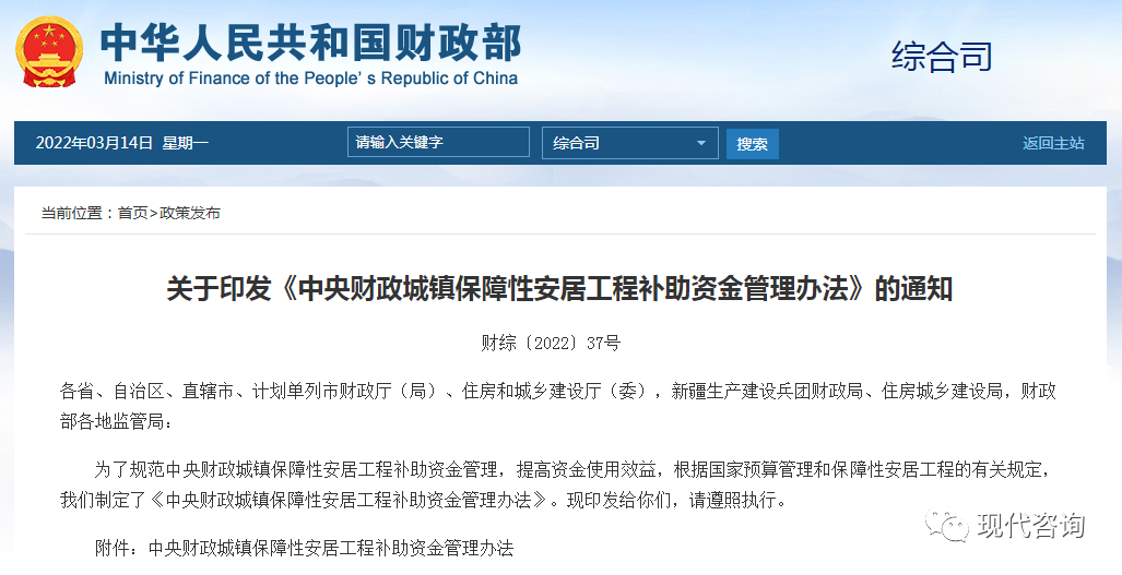 據財政部網站3月14日消息,財政部印發《中央財政城鎮保障性安居工程補助資金管理辦法》