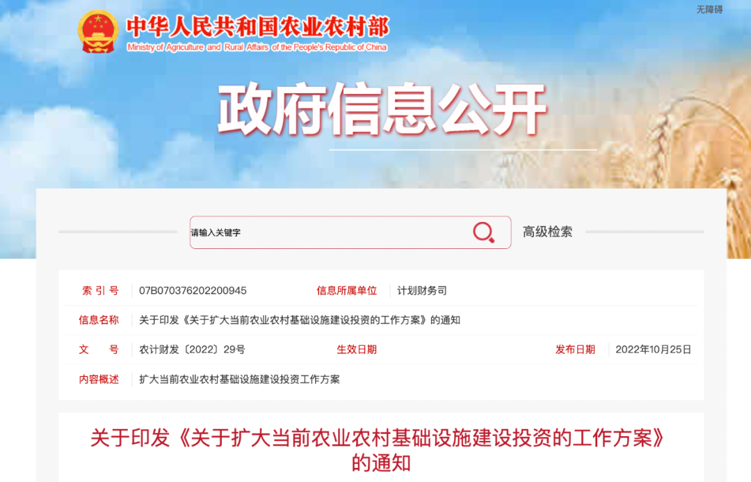 加強(qiáng)農(nóng)業(yè)農(nóng)村基礎(chǔ)設(shè)施建設(shè),是擴(kuò)大有效投資、穩(wěn)住經(jīng)濟(jì)大盤(pán)的重點(diǎn)任務(wù),有利于增強(qiáng)食物保供能力、帶動(dòng)基礎(chǔ)產(chǎn)業(yè)發(fā)展、暢通城鄉(xiāng)經(jīng)濟(jì)循環(huán),具有長(zhǎng)遠(yuǎn)的重要性和現(xiàn)實(shí)的緊迫性。為加快推進(jìn)當(dāng)前農(nóng)業(yè)農(nóng)村基礎(chǔ)設(shè)施建設(shè),特制定以下工作方案。