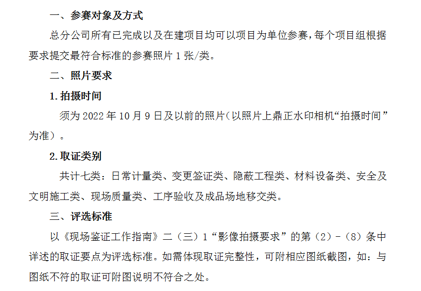 2022年10月9日,我們在全公司范圍內組織了“項目現場鑒證取證技能大賽”活動,自活動通知發布以來,共收到來自總分公司的119張參賽鑒證照片。