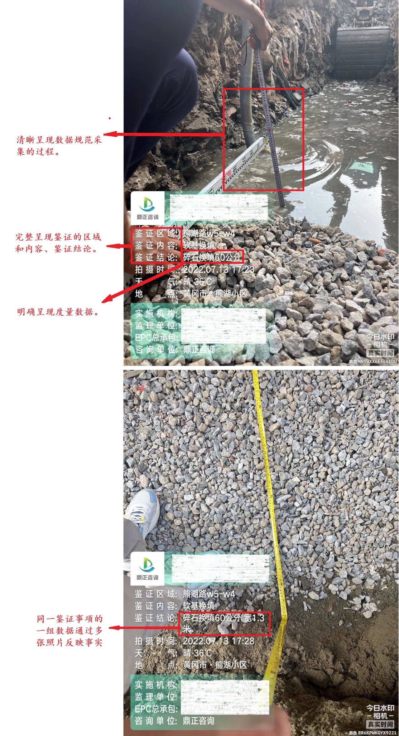 現場鑒證照片是再現工程現場施工質量、安全、隱蔽工程等實際施工情況的重要證據,是各項目施工階段工程監理、全過程造價咨詢、結算審核以及解決工程糾紛提供有價值的支撐材料,是筑好每一個項目,夯實鼎正服務品質的基石。