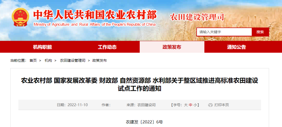 3. 五部門聯(lián)合發(fā)文《關(guān)于整區(qū)域推進高標準農(nóng)田建設(shè)試點工作的通知》