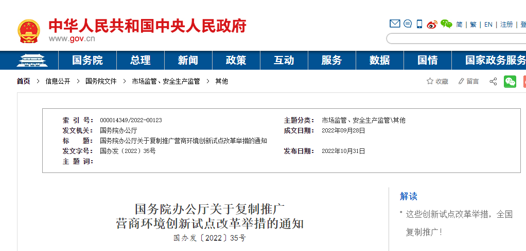 近日,國務(wù)院辦公廳發(fā)布關(guān)于復制推廣營商環(huán)境創(chuàng)新試點改革舉措的通知。一是進一步破除區(qū)域分割和地方保護等不合理限制,“清除招投標和政府采購領(lǐng)域?qū)ν獾仄髽I(yè)設(shè)置的隱性門檻和壁壘”,二是健全更加開放透明、規(guī)范高效的市場主體準入和退出機制,三是持續(xù)提升投資和建設(shè)便利度,“推進社會投資項目‘用地清單制’改革”、“分階段整合相關(guān)測繪測量事項”、“推行水電氣暖等市政接入工程涉及的行政審批在線并聯(lián)辦理”、“開展聯(lián)合驗收‘一口受理’”、“進一步優(yōu)化工程建設(shè)項目聯(lián)合驗收方式”、“簡化實行聯(lián)合驗收的工程建設(shè)項目竣工驗收備案手續(xù)”、“對已滿足使用功能的單位工程開展單獨竣工驗收”等。四是更好支持市場主體創(chuàng)新發(fā)展,五是持續(xù)提升跨境貿(mào)易便利化水平,六是維護公平競爭秩序,七是進一步加強和創(chuàng)新監(jiān)管,八是依法保護各類市場主體產(chǎn)權(quán)和合法權(quán)益,九是優(yōu)化經(jīng)常性涉企服務(wù)。