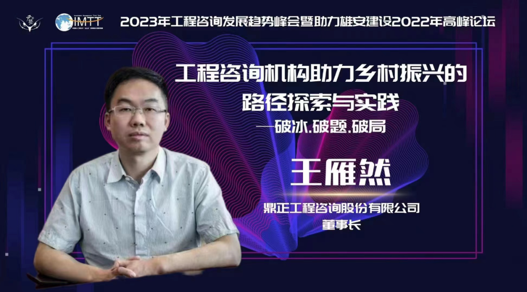 王雁然董事長受邀參與論壇并發(fā)表主題演講,他以《工程咨詢機構助力鄉(xiāng)村振興的路徑探索與實踐》為題,從破冰、破局、破題三個層次逐步切入,先后論述了新時代背景下推進鄉(xiāng)村振興戰(zhàn)略面臨的機遇與挑戰(zhàn)。
