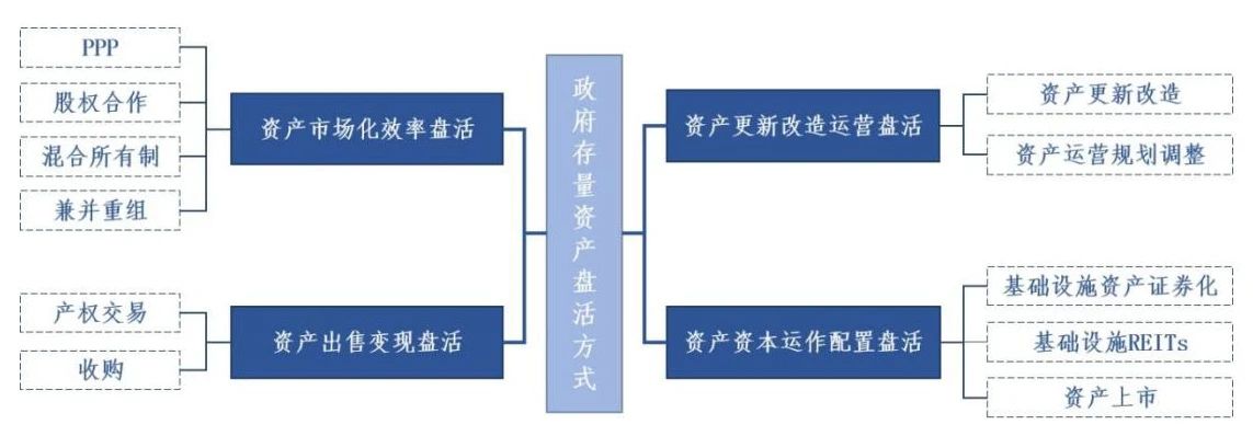 ? 資產(chǎn)市場(chǎng)化效率盤活,是指通過(guò)PPP模式、混合所有制改革、股權(quán)合作等市場(chǎng)化方式,引入并借助第三方的專業(yè)化技術(shù)、管理經(jīng)驗(yàn)等,提高資產(chǎn)運(yùn)營(yíng)效率與質(zhì)量,進(jìn)而盤活存量資產(chǎn)。