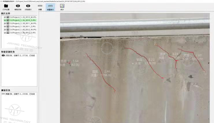 對于斜拉索橋,其受力模式較為復雜,多個關鍵部位均有可能產(chǎn)生受力裂縫或其他病害。珈鷹利用自主研發(fā)的智能識別測量軟件對已采集的高清圖像進行智能、高效處理,精準定位受損位置,捕捉病害。