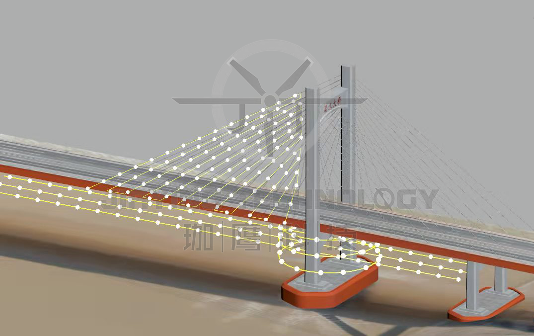 鰲江特大橋跨越鰲江口,主跨320米,主橋橋塔采用H型門式橋塔,索塔高為102.4米,相當40層樓高,全橋共有96根斜拉索。就結構特性而言,斜拉橋整體剛度遠小于連續(xù)剛構橋,因此通過智能檢測的手段收集病害信息至關重要。