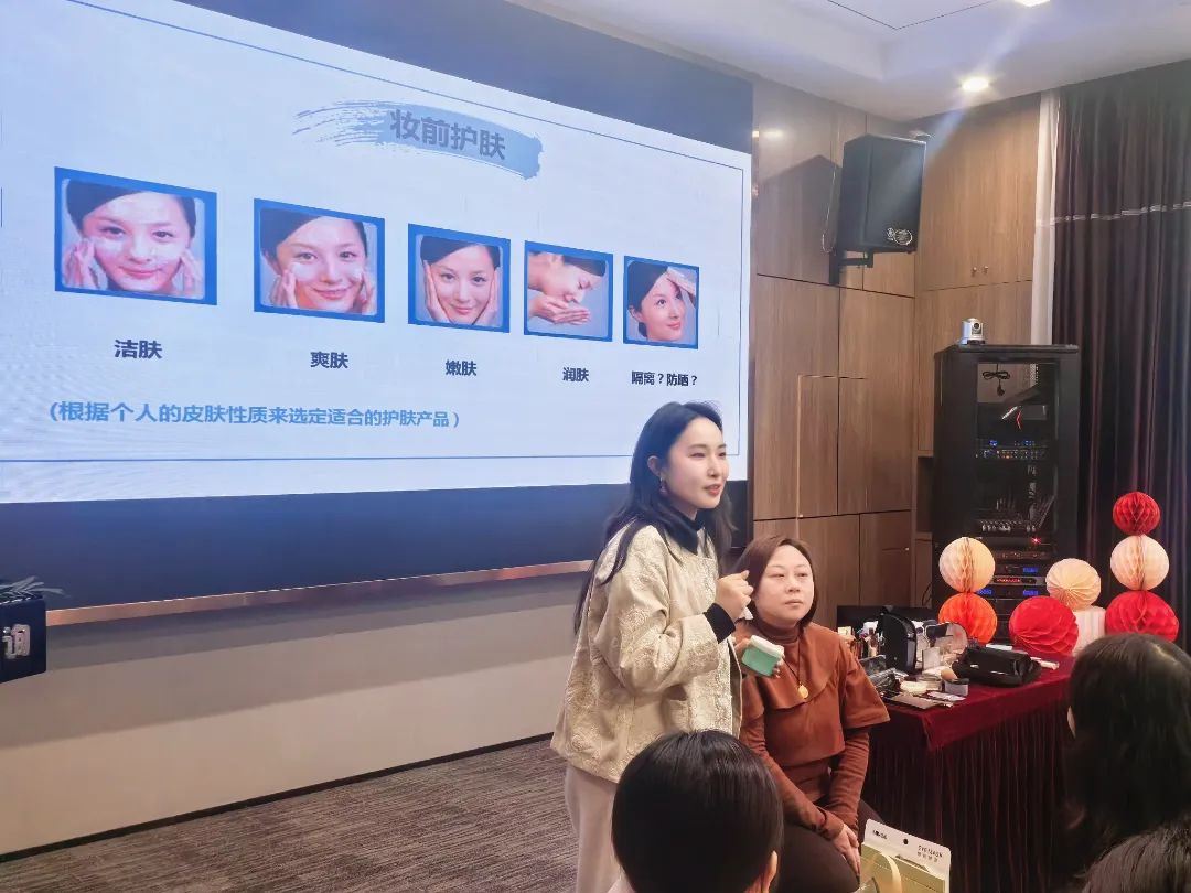 課堂上,專業(yè)美妝老師以細膩的筆觸和專業(yè)的視角,系統(tǒng)地解析了職場與生活雙場景下的妝容公式。她強調(diào),底妝是整體妝容的基石,不同膚色適合的底妝色號各不相同,精準選擇能讓妝容更加自然和諧。從職場著裝到妝容設(shè)計,從理論剖析到實操技巧,從眉形勾勒到腮紅暈染,通過現(xiàn)場演示,將每一個步驟都講解得細致入微。她手把手地指導(dǎo),幫助在場的每一位女神擺脫“手殘”的困擾,傳授實用的化妝技巧,耐心解答每一個疑問。