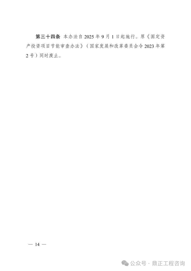 《辦法》自2025年9月1日起施行,原《固定資產投資項目節能審查辦法》(國家發展和改革委員會令2023年第2號)同時廢止。