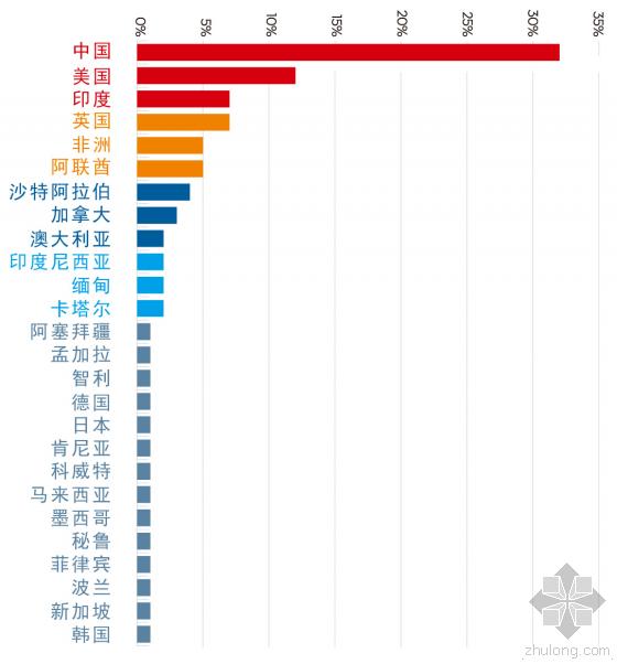 中國仍然得到了最多的“增長最快預期”(32%)(見后表),盡管這兩年隨著北京政府緊縮房地產,中國市場出現了一定程度的下滑。澳大利亞公司Woods