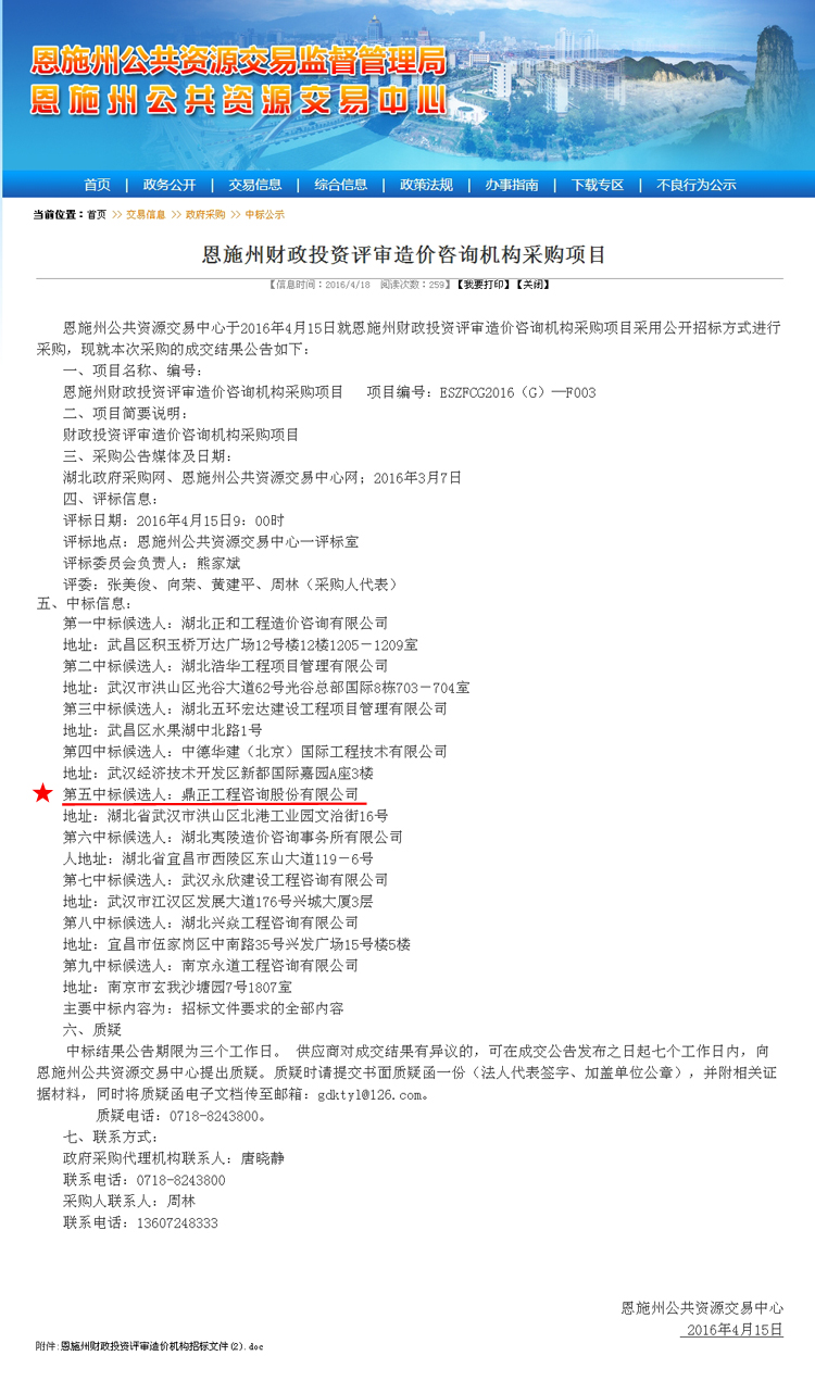 【經(jīng)營(yíng)成果】我司中標(biāo)恩施州財(cái)政投資評(píng)審造價(jià)咨詢機(jī)構(gòu)采購項(xiàng)目