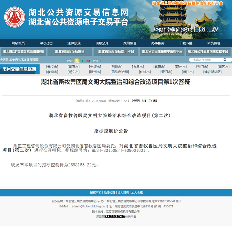 湖北省畜牧獸醫局文明大院整治和綜合改造項目第1次答疑