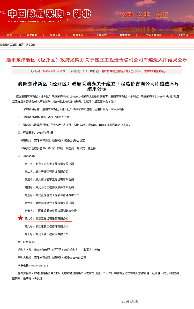 【經(jīng)營(yíng)成果】我司入圍襄陽(yáng)東津新區(qū)(經(jīng)開(kāi)區(qū))政府采購(gòu)辦工程造價(jià)咨詢(xún)公司庫(kù)