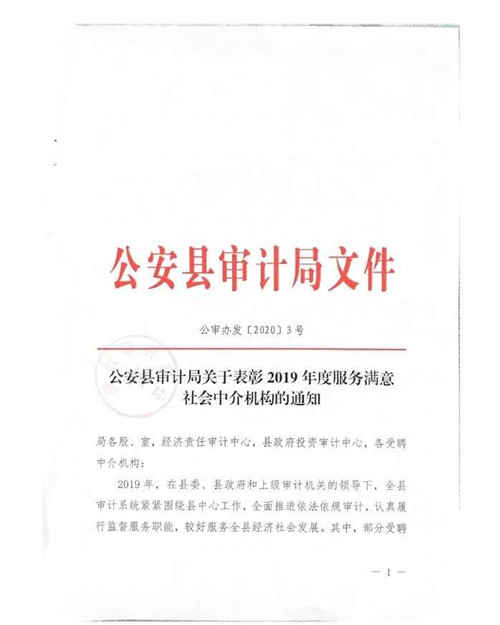自2019年7月1日鼎正咨詢成為公安縣審計局的入庫合作單位以來,荊州分公司同事們在工程竣工結算審計過程中,精心組織、合理安排、嚴于律己、廉潔從審,在確保重點工程順利推進、節約政府資金、提高投資效益等方面做出了突出貢獻,得到了公安縣相關單位的一致好評,為公司贏得了信譽。